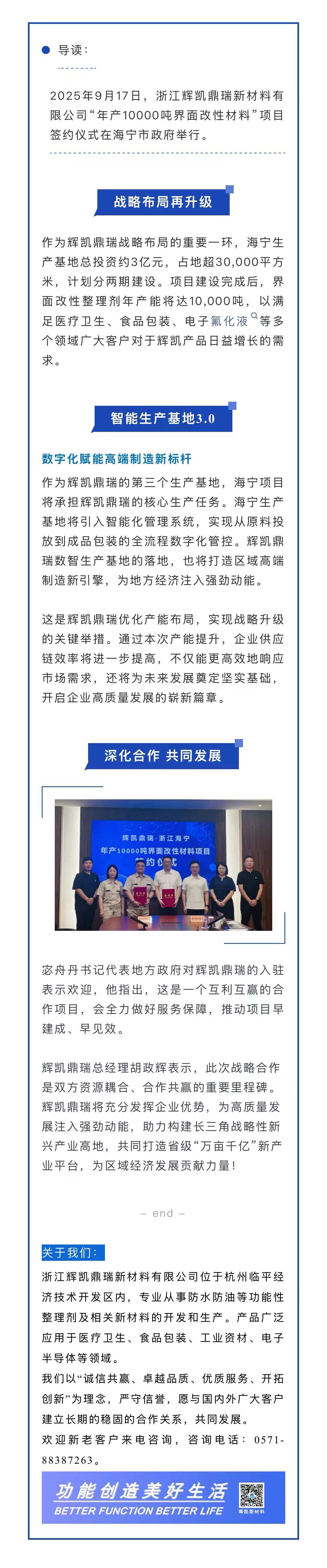 投資3億!輝凱鼎瑞新生產(chǎn)基地落地嘉興海寧